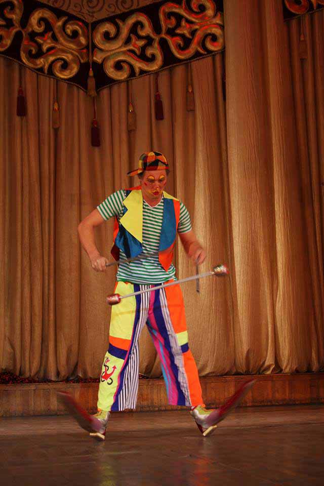 — На самом деле, ответственность перед аудиторий огромная везде. Для артиста в плане публики нет большой разницы, если ты выступаешь в ресторане, на сцене или на манеже Госцирка. Но есть отличия в плане атмосферы. Манеж как магический круг, он требует больше громких фраз, в разговорных жанрах. А в других номерах больше широких и объемных движений. Когда представление проходит в камерных помещениях, для маленьких детей, которые близко сидят к месту действа, мы избегаем яркого грима, да и говорим не так не так громко. Чтоб не испугать ни гримом, ни голосом. В цирке же напротив грим немного другой, такой, чтобы видно было издалека. В этом и есть основное отличие.