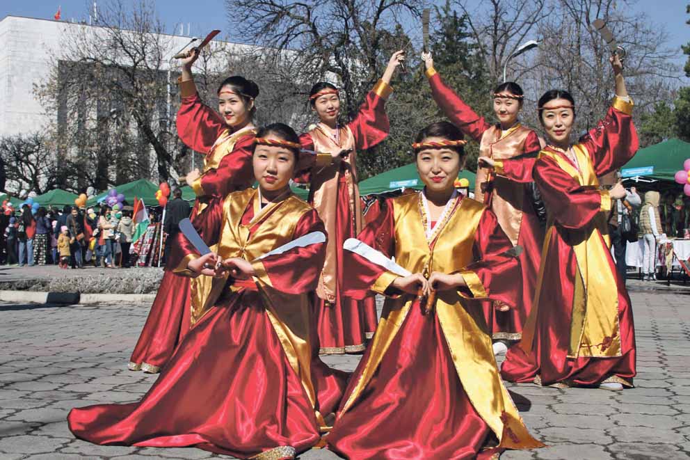 Перед собравшимися выступили различные творческие коллективы. Гости с большим удовольствием пускались в пляс под узбекскую музыку, аплодировали танцорам, исполняющим корейские танцы, восхищались энергичной лезгинкой и подпевали казахстанским певцам. Больше всего гостей скапливалось возле палаток с русской национальной кузней, а также Украинского общества «Берегиня» с солениями и домашней колбаской, своими ароматами также манила и палатка с угощениями от Общественного объединения Корейцев КР.