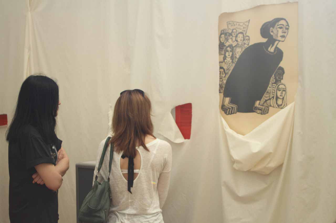 Данные художницы были яркими представительницами профессиональной и общественной деятельности, и их работы могут сегодня служить основанием для дискуссии на актуальные темы – эмансипация, субъектность женщины, равенство независимо от гендерной идентичности и еще множество тем, значимых для каждого зрителя. Гости, пришедшие на мероприятие, были весьма удивлены увиденному. Экспонаты вместо обычных рамок были помещены в белую ткань. Присутствующие с большим вниманием прочитывали аннотации, к картинам отодвигая куски полотна.