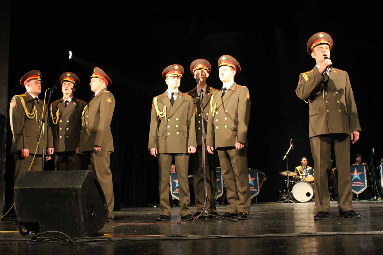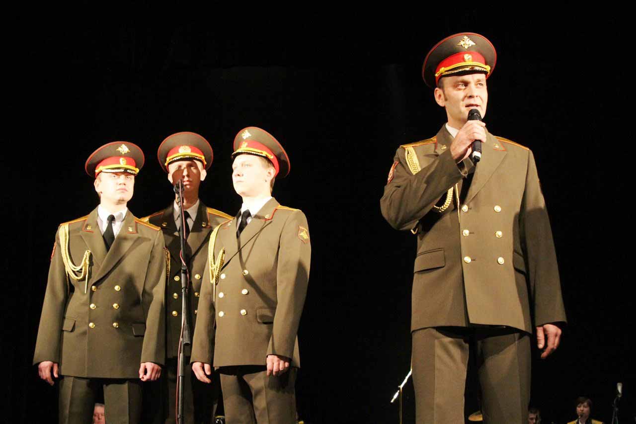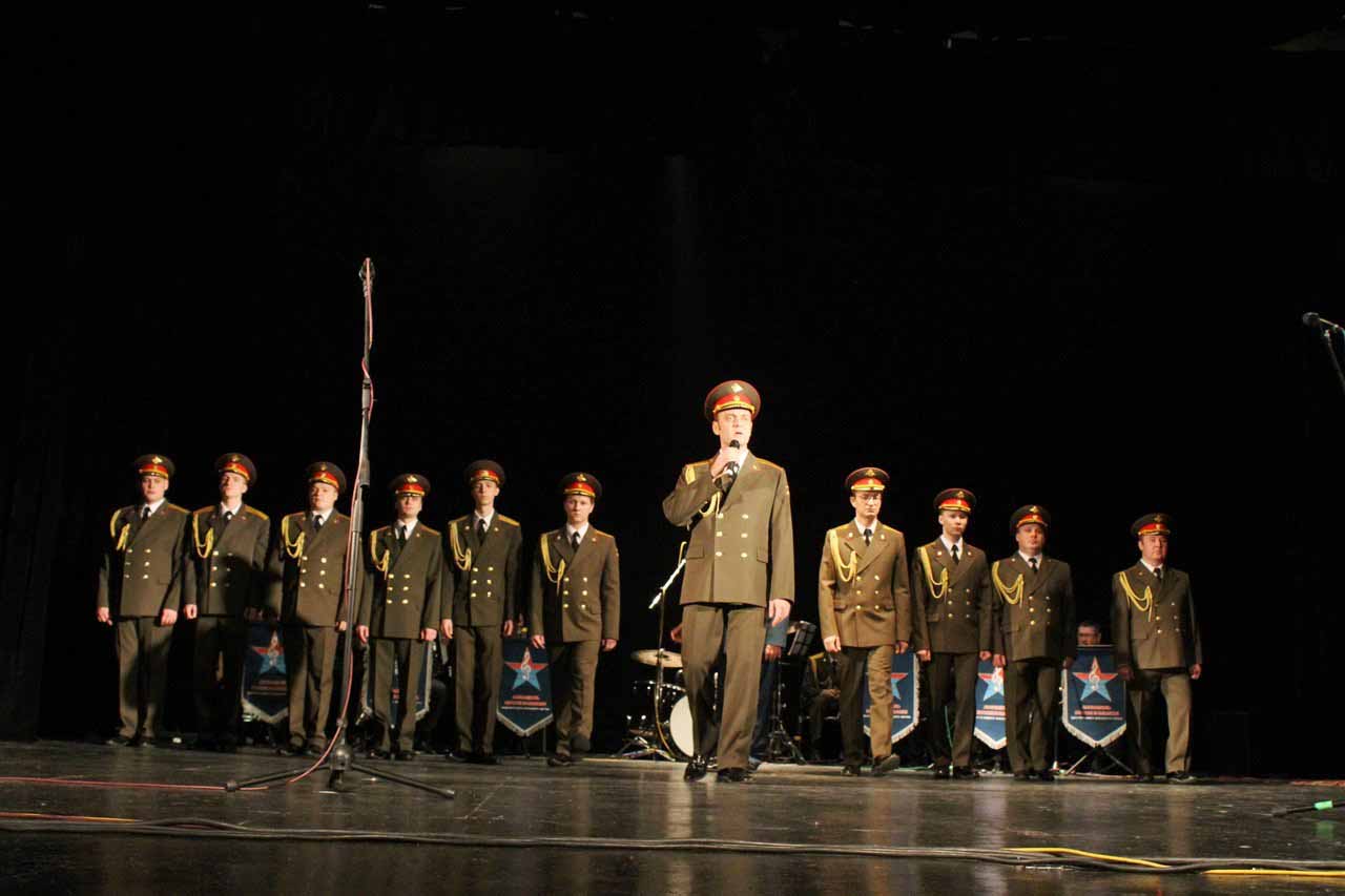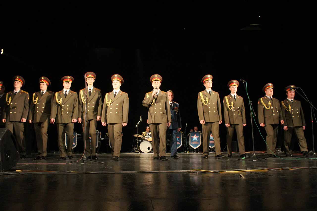 — В год празднования 70-летия Победы в Великой Отечественной войне Министерство Обороны Российской Федерации продолжает цикл мероприятий в Кыргызстане, посвященных празднованию этой великой даты в истории. И сегодня мы встречаем Ансамбль песни и пляски Центрального военного округа. Во все времена музыка помогала вооруженным силам побеждать в самых тяжелых сражениях и являлась тем стержнем, который объединял народы и культуры всех стран мира, — сообщил военный и военно-воздушный атташе при Посольстве Российской Федерации в Кыргызстане полковник Николай Новосельцев.