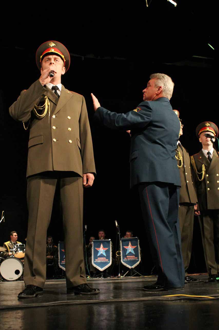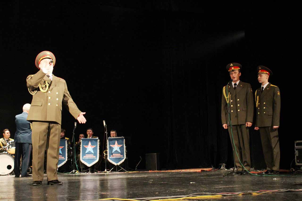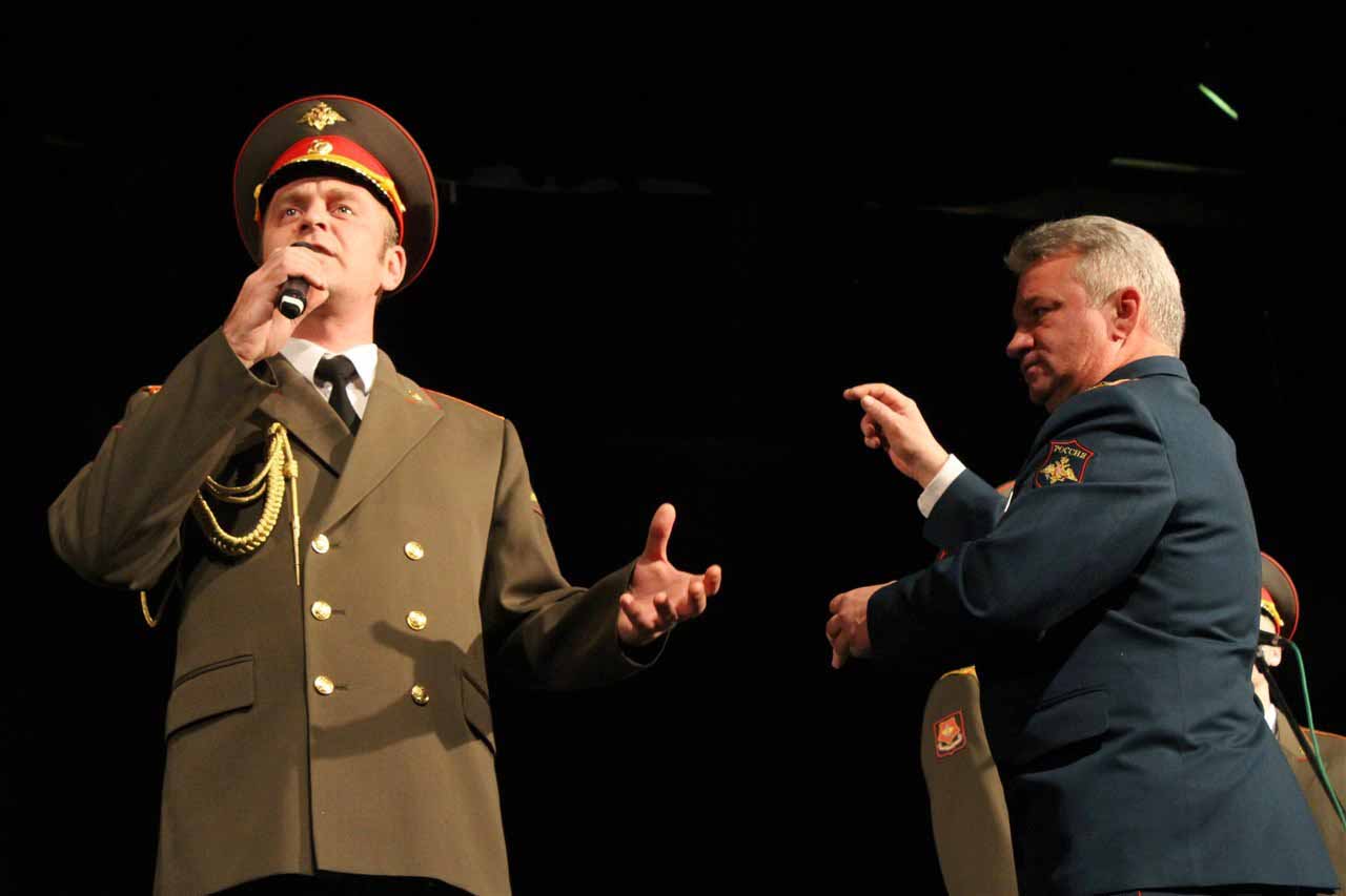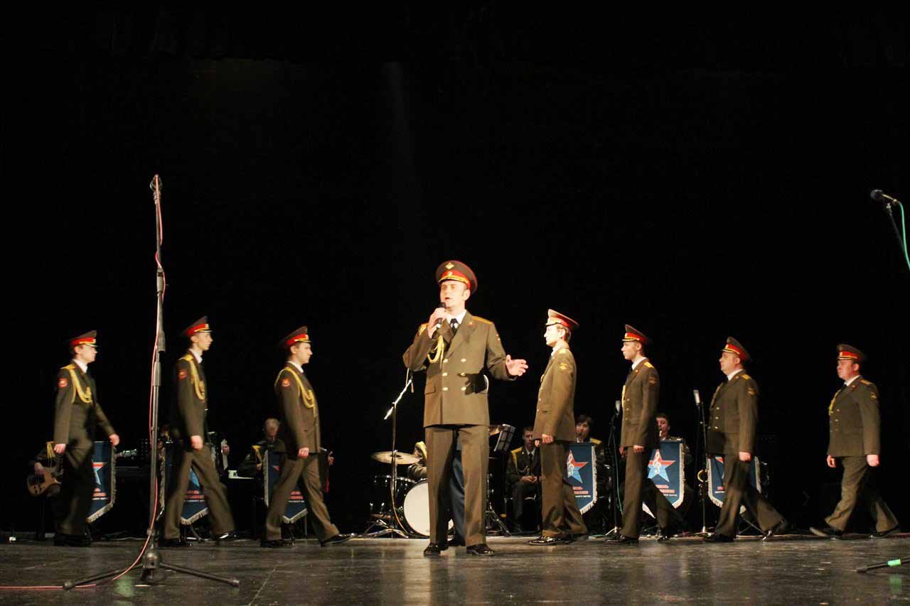 — В год празднования 70-летия Победы в Великой Отечественной войне Министерство Обороны Российской Федерации продолжает цикл мероприятий в Кыргызстане, посвященных празднованию этой великой даты в истории. И сегодня мы встречаем Ансамбль песни и пляски Центрального военного округа. Во все времена музыка помогала вооруженным силам побеждать в самых тяжелых сражениях и являлась тем стержнем, который объединял народы и культуры всех стран мира, — сообщил военный и военно-воздушный атташе при Посольстве Российской Федерации в Кыргызстане полковник Николай Новосельцев.