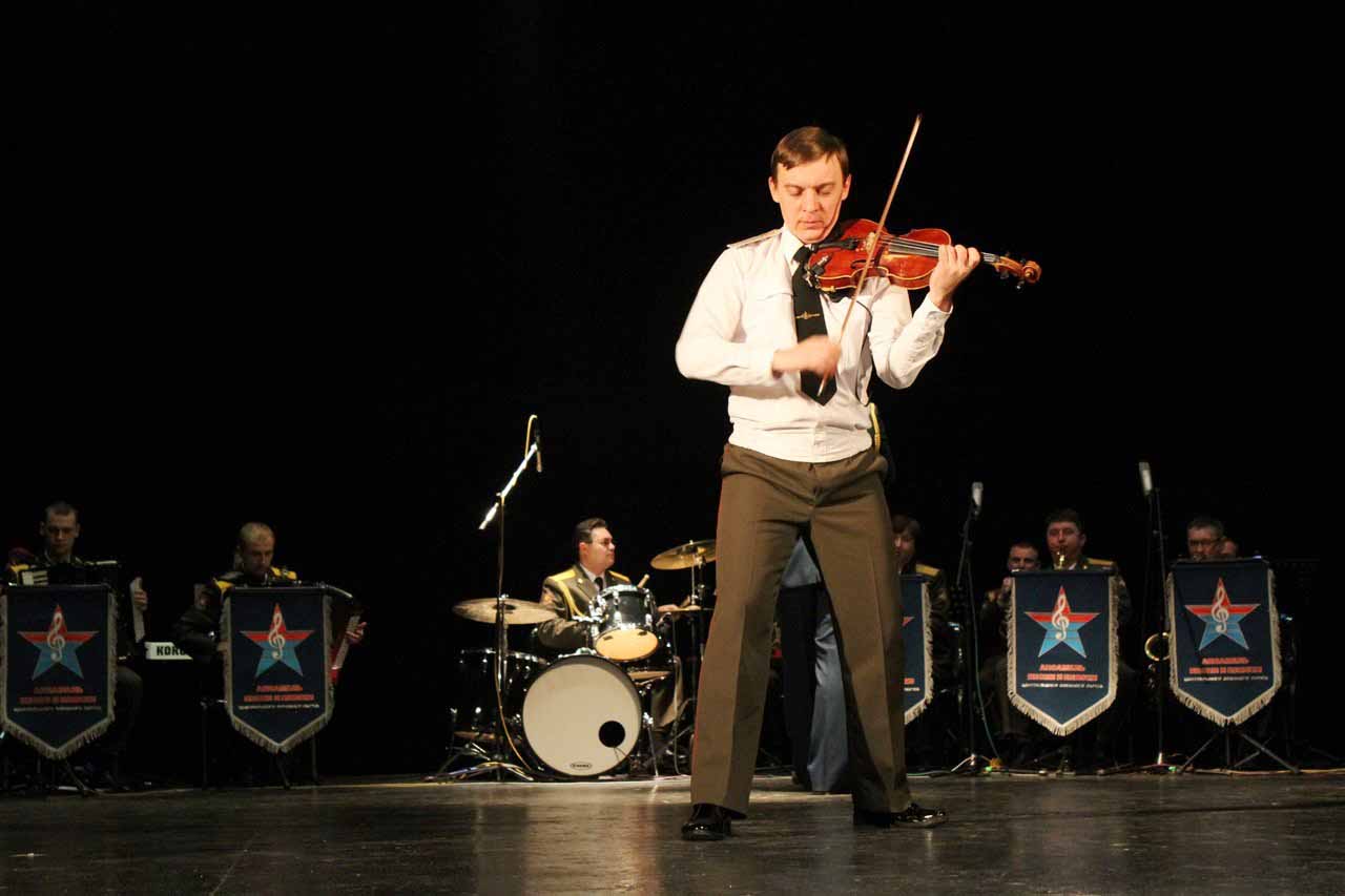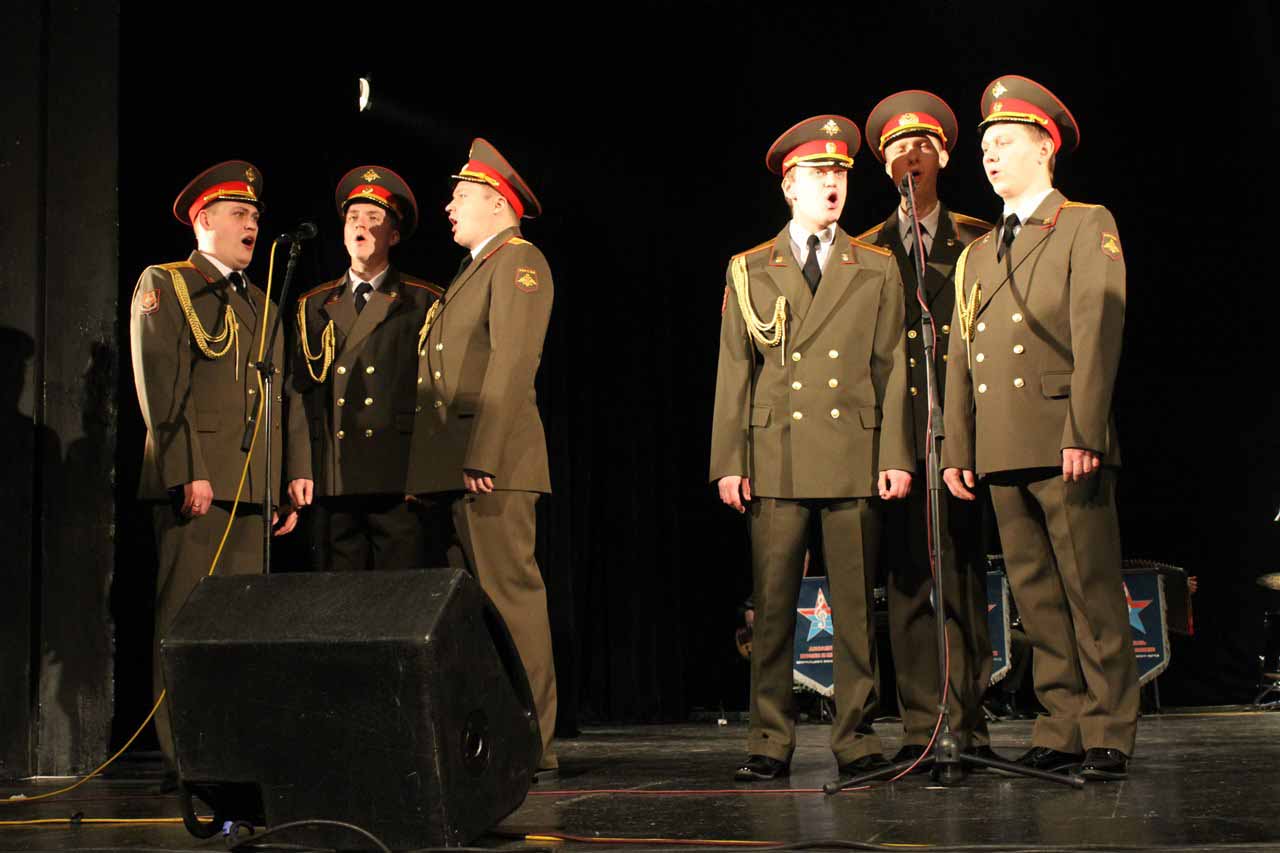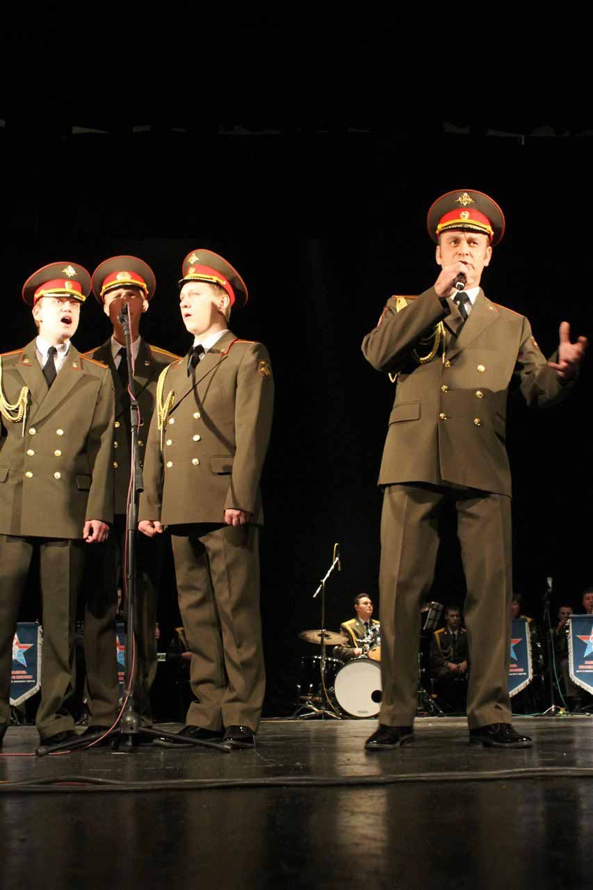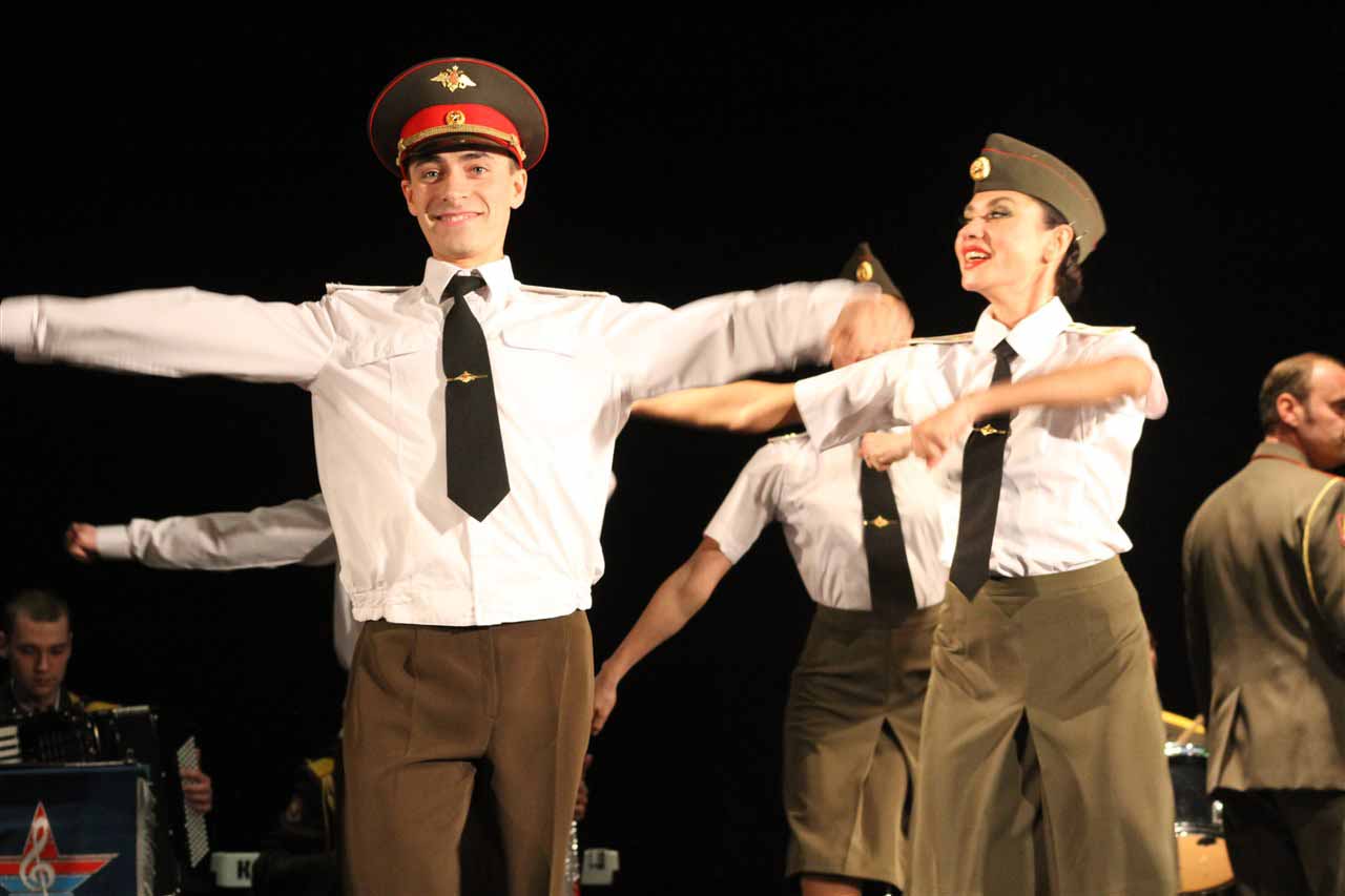 — В год празднования 70-летия Победы в Великой Отечественной войне Министерство Обороны Российской Федерации продолжает цикл мероприятий в Кыргызстане, посвященных празднованию этой великой даты в истории. И сегодня мы встречаем Ансамбль песни и пляски Центрального военного округа. Во все времена музыка помогала вооруженным силам побеждать в самых тяжелых сражениях и являлась тем стержнем, который объединял народы и культуры всех стран мира, — сообщил военный и военно-воздушный атташе при Посольстве Российской Федерации в Кыргызстане полковник Николай Новосельцев.