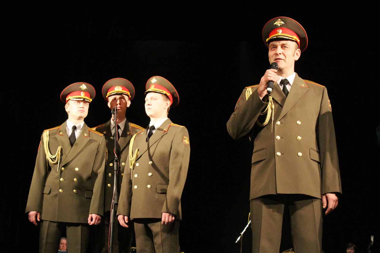 Открыла мероприятия известная композиция Софии Ротару: «Я, ты, он, она – вместе целая страна». Казалось бы, все мы слышали эту песню десятки раз, но в этот вечер она прозвучала в сопровождении мужского хора, который просто поразил зрителей мощью своих голосов. Удивили и композиции из сокровищницы мировой классики, которые были исполнены в совершенно иной интерпретации, а именно в аранжировке военного оркестра, который придал определенную мощь известным произведениям.
