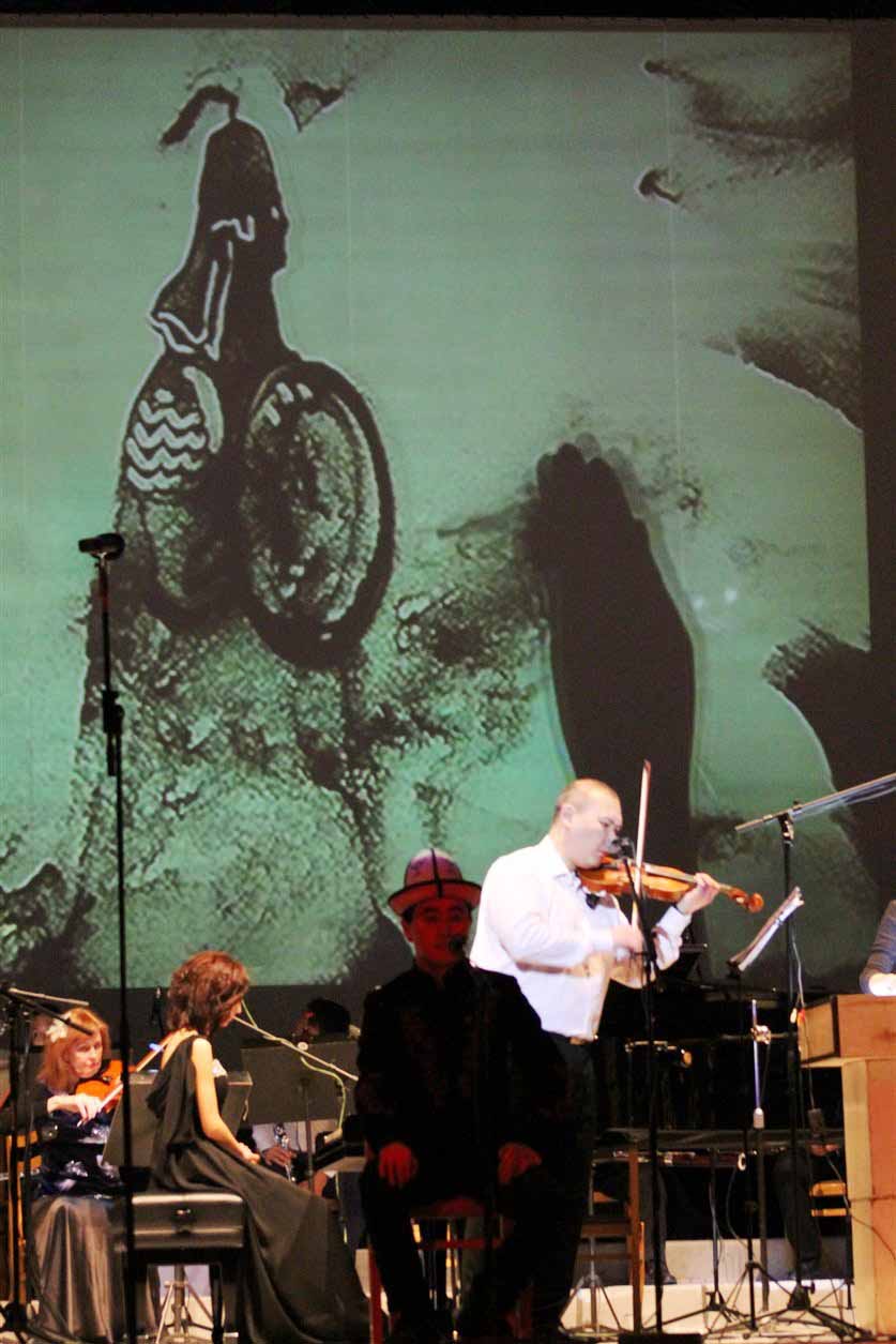 Открыл концерт манасчы Нурбек Талантбеков. Солирующие фортепианные партии исполнила Айтурган Турапова, в пескографии солировала Асылкан Ибраимова. Известные произведения для камерного оркестра аранжировал Нур Омурбаев.