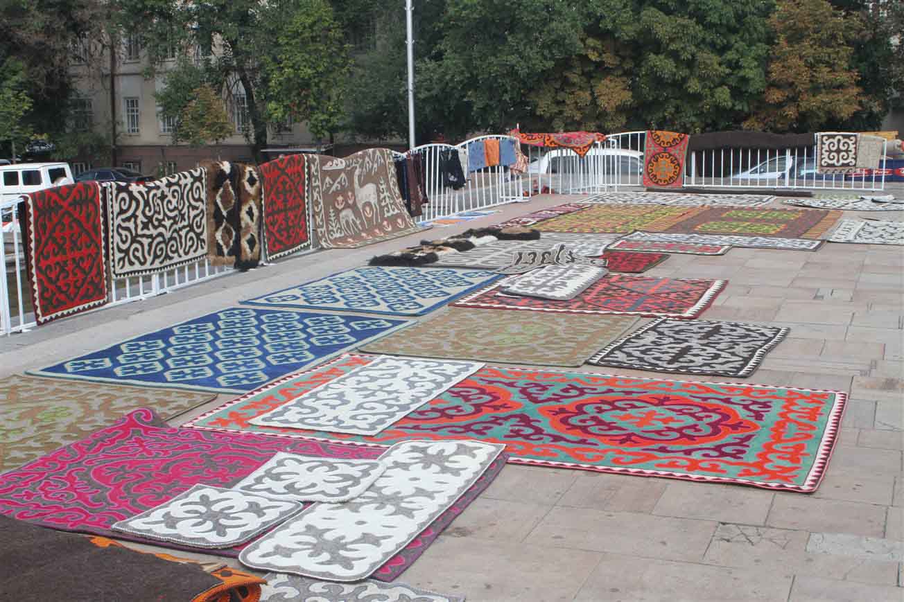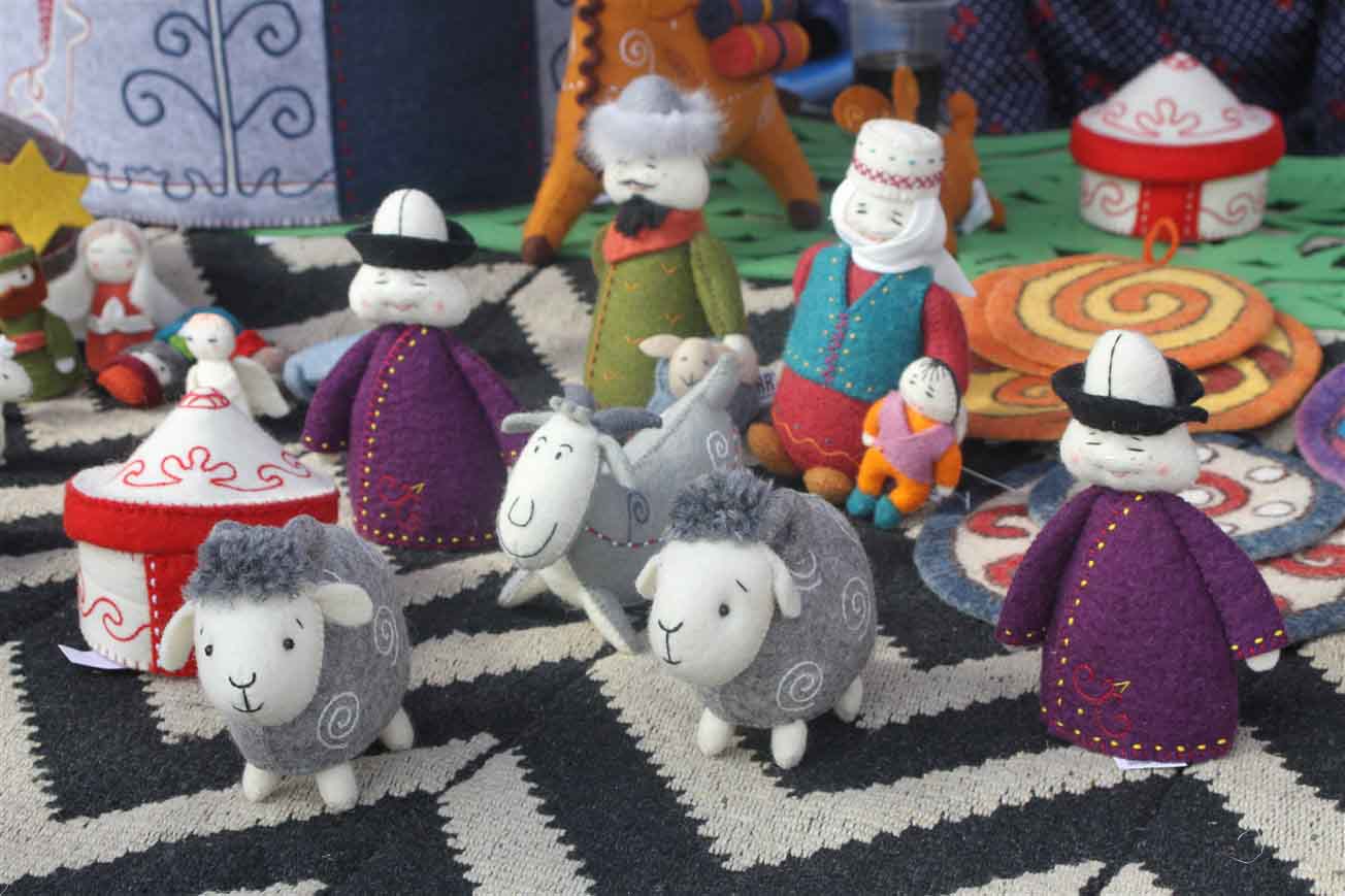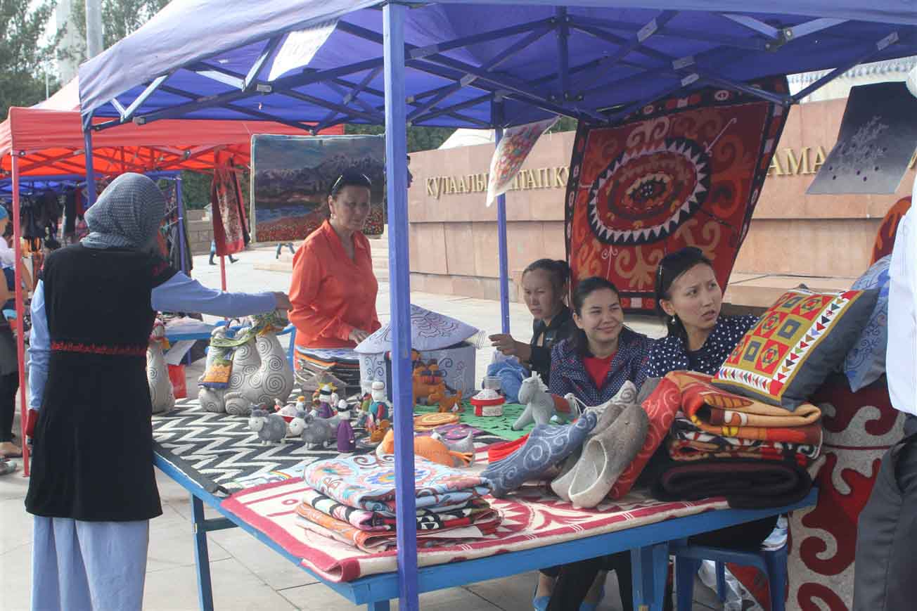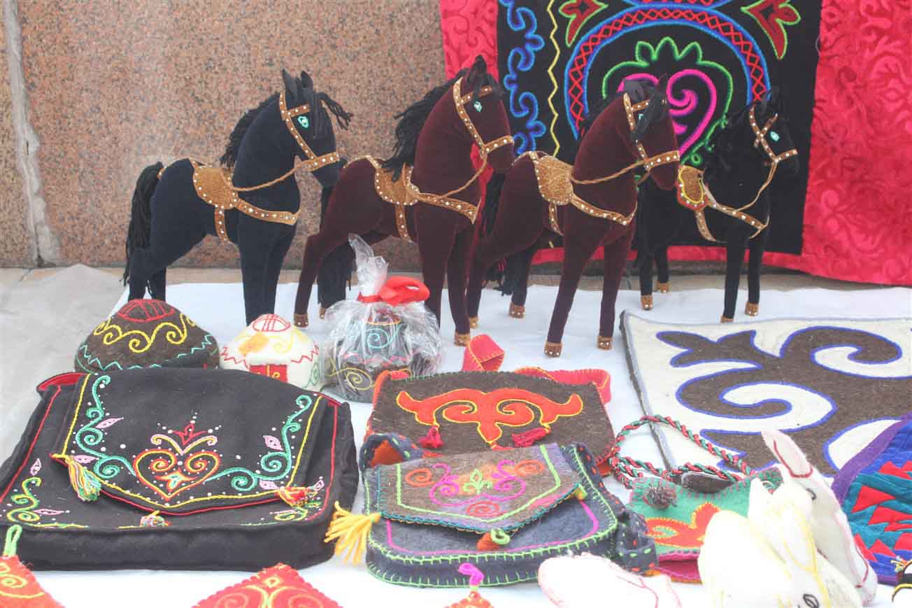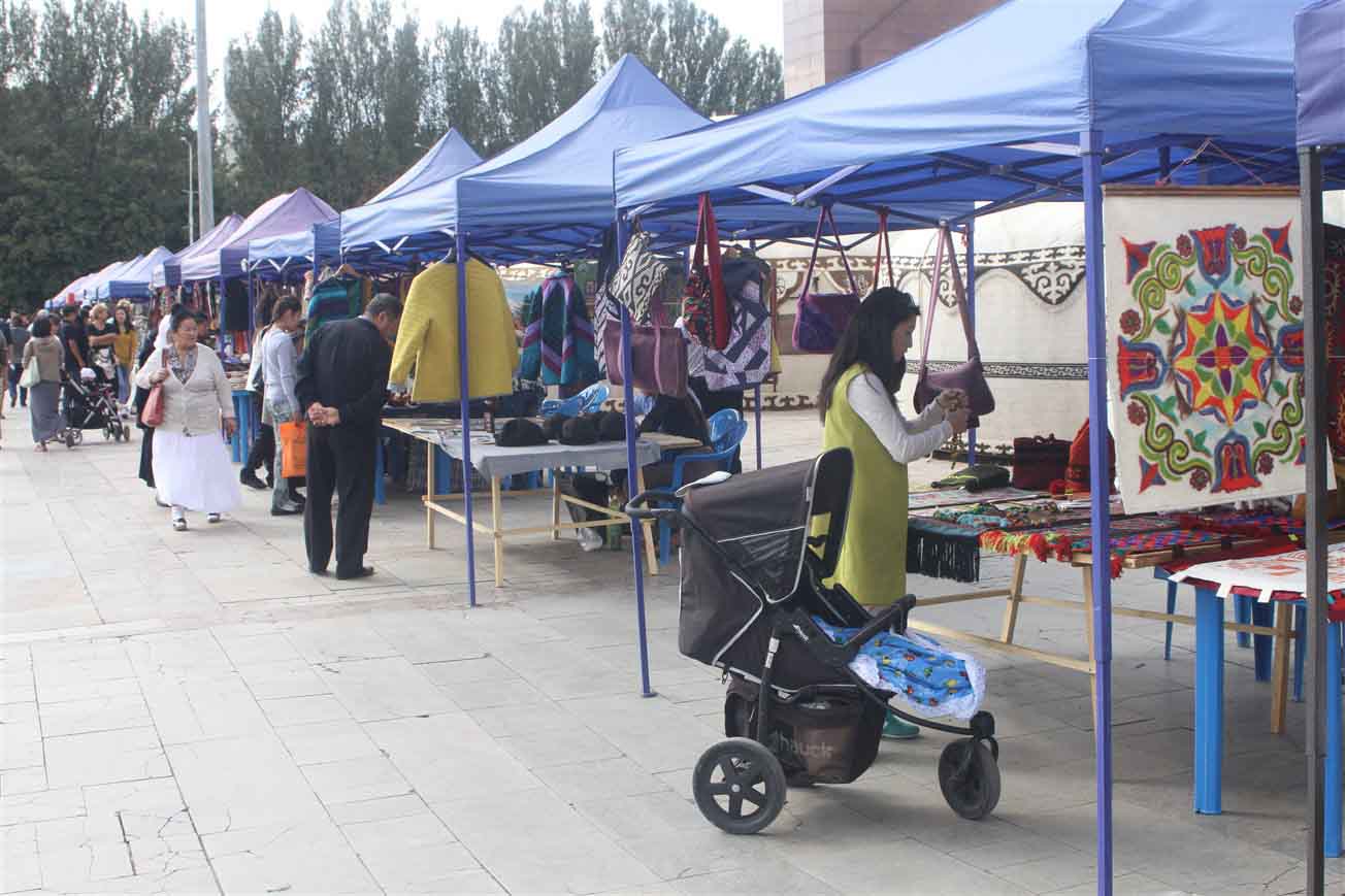 В самом центре столицы на площади «Ала-Тоо» были установлены более двадцати украшенных юрт, рядом с которыми расположились мастера. Ремесленники представили свои лучшие работы и приглашали посетить гостей этнографическую деревню «Кыргыз кочу».