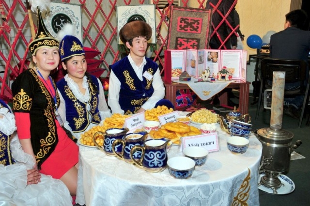 Девушки украсили свои творения, выложили в виде горки, некоторые представили кулинарные композиции в виде юрты. Не еда, а сплошное загляденье. К участию в конкурсе претенденты на победу подошли очень серьезно, они искусно сервировали стол в национальном стиле и надели лучшую одежду. Зрителей любезно угощали чаем.