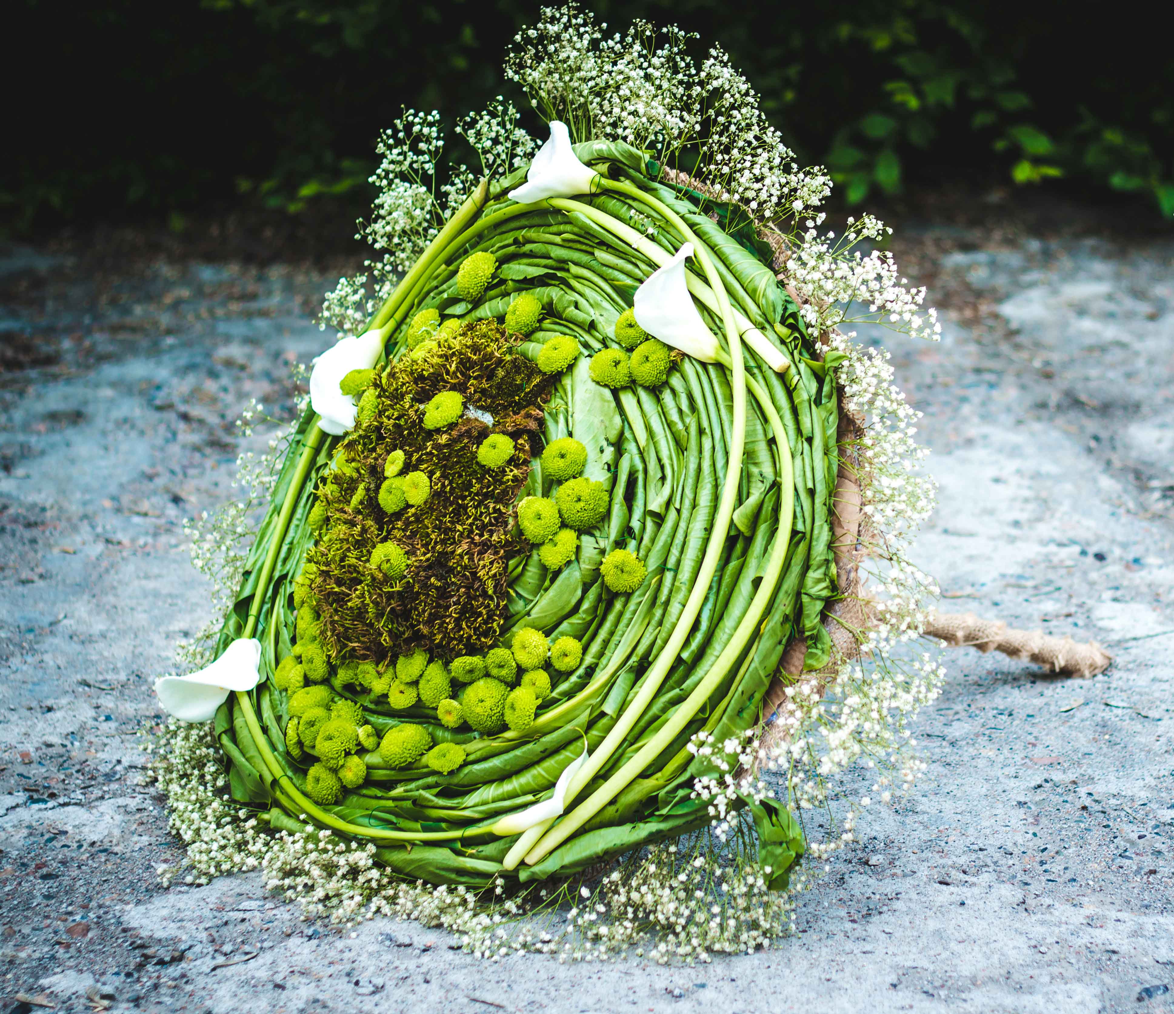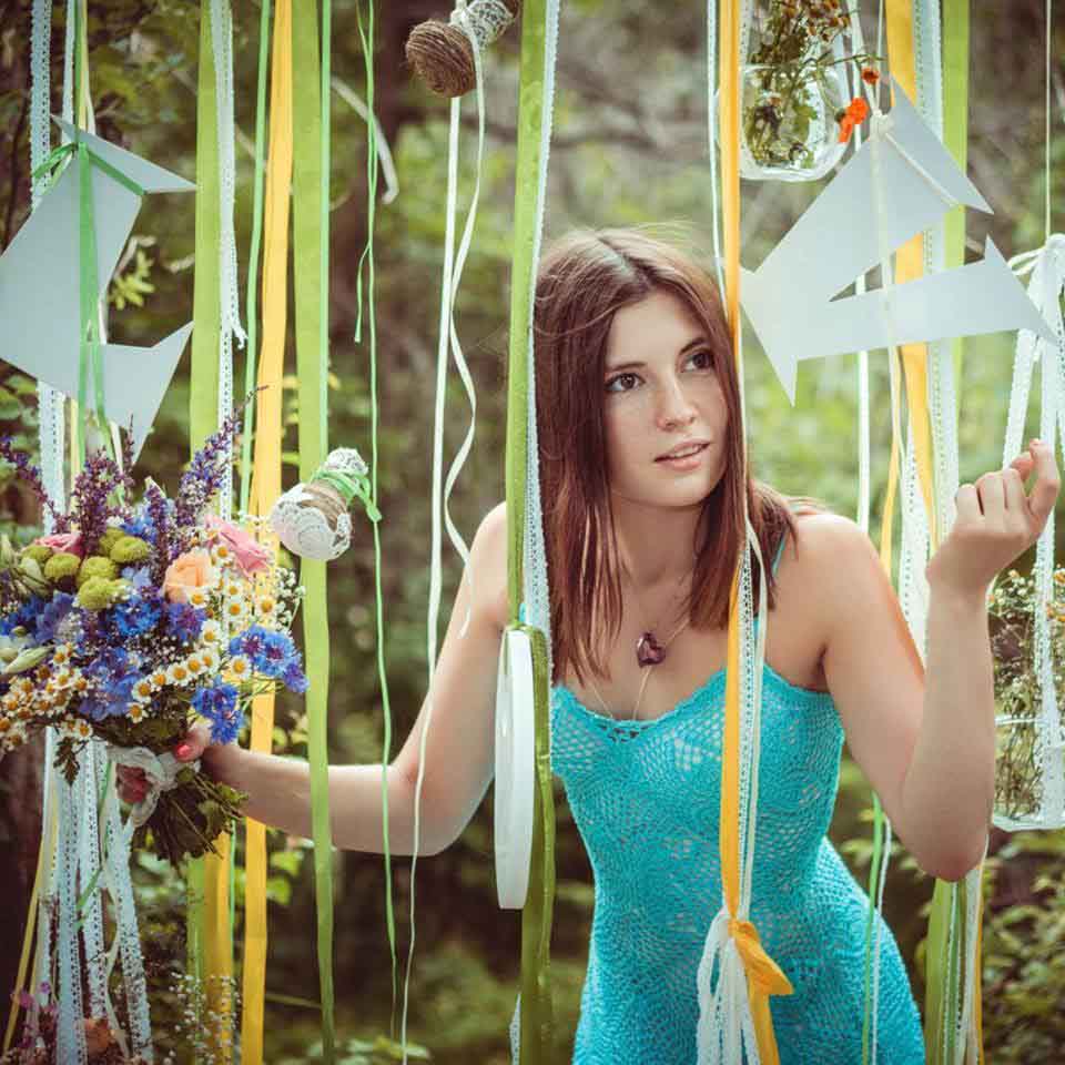 При этом бы хотелось отметить, что букет в нынешнем понимании это уже не просто три цветка в целлофане, из бутонов делают деревья, огромные сердца, все что угодно. Ведь цветы могут принимать различные формы, главное это умело создать композицию. Однажды на цветочную выставку, я сплела каркас из винограда, и сделала макушку и мха. Затем я украсила свое произведение «Дерево жизни» каменной розой. Очень люблю работать с необычными цветами, к примеру, шалфеем, из него я плету венки для девушек. Помимо привозных материалов, которые выращиваются специально для флористов. Использую растения, которые произрастают на дачах, огородах, горах. Это естественно и красиво. С искусственными цветами я не работаю принципиально, потому что считаю, что волшебство должно быть настоящим. К примеру, свадьба – это долгожданный день в жизни жениха и невесты. Я считаю кощунством — поставить на стол неживые цветы. Ведь важен и аромат, который создает волшебную атмосферу. Я не люблю крашеные цветы и часто отговариваю клиентов от использования их в композиции, так как это неестественно и против природы.