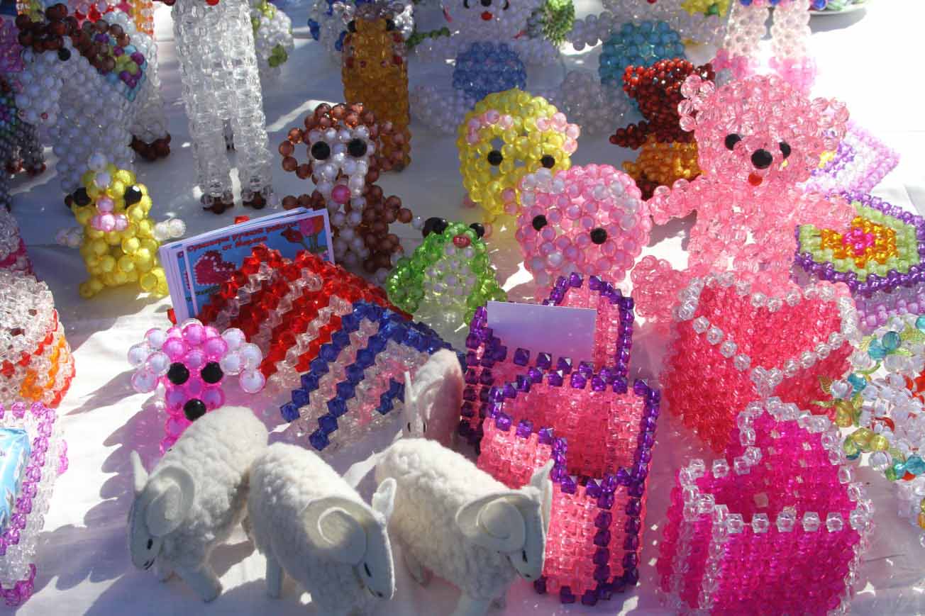 Посетители задерживались у каждой палатки на долгое время и с большим интересом рассматривали представленные произведения, а также беседовали с рукодельницами. Совершенно сказочным получился стенд с игрушками из бус.