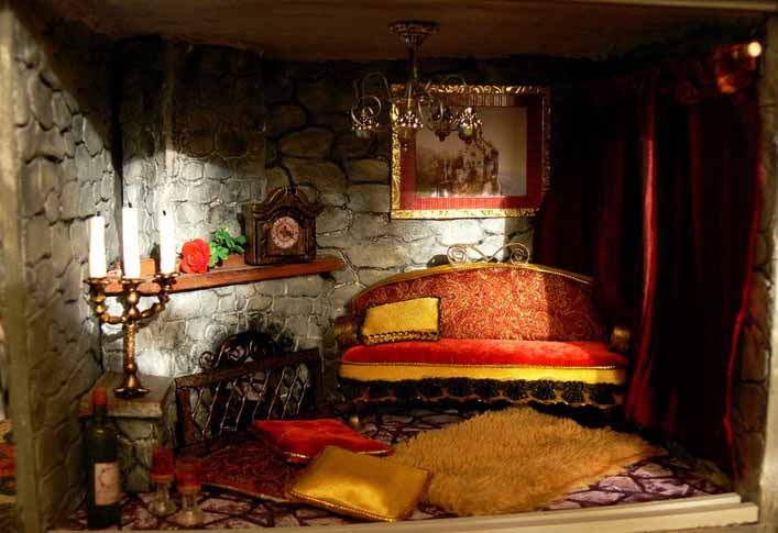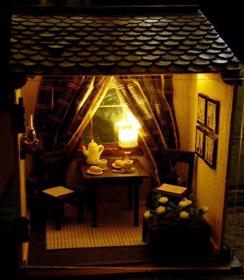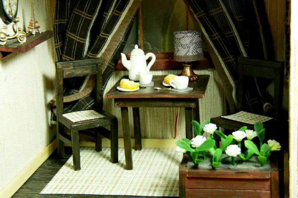 — Мое творчество началось с обычного экземпляра, который продается в магазине, и собрать его необходимо было своими руками. Он был собран, убран куда-то далеко, и когда через время при уборке я собралась его выкинуть… У меня не поднялась рука. И тогда я его переделала, сделала камин, кресло и провела свет. Я просмотрела множество подобных работ в интернете и загорелась созданием целой коллекции. Эти домики невероятно похожи на настоящие, только разница в том, что они очень маленькие, и я поняла, что необходимо стремиться к этой «настоящести», и тогда я стала больше уделять внимания крохотным деталям – штукатурке, черепице и предметам интерьера. Убранство в каждом, мною созданном, домике, в первую очередь, нравится мне, и я всегда думаю о том, что мне и самой было бы в нем очень комфортно жить. И многие люди мне говорят о том, что сами бы хотели там жить. Еще меня часто благодарят за то, что эти комнатки без жителей, и поэтому каждый рассматривающий его человек может представить себя на месте хозяина.