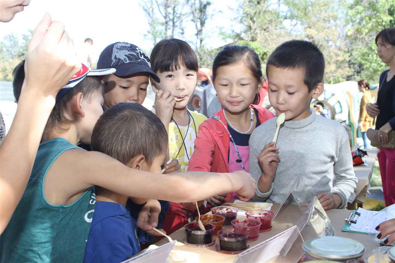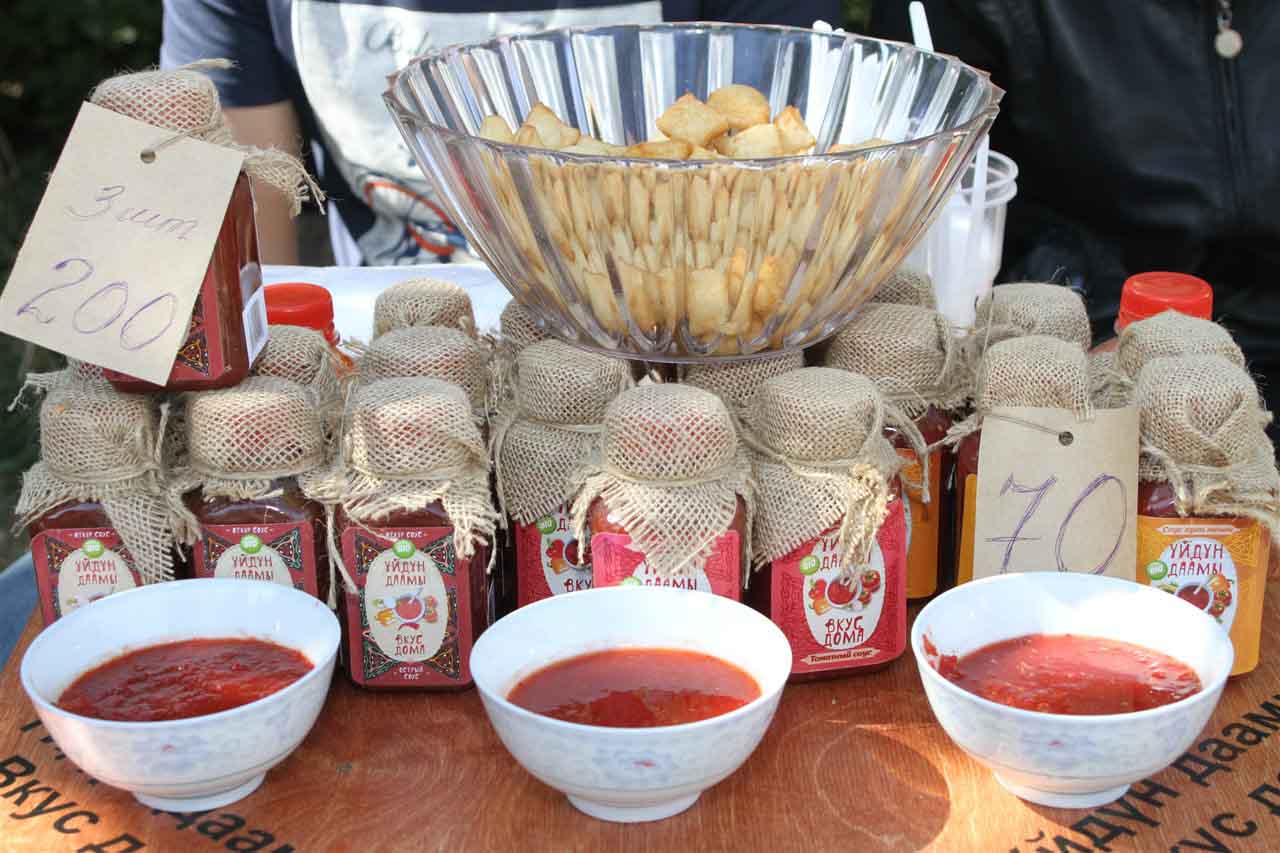 — Мы продаем различные варенья, и все они сделаны из ягод, которые произрастают на побережье озера Иссык-Куль. Весь этот товар приготовлен в домашних условиях. Предлагаем малиновое, облепиховое варенье, а также джемы из черной и красной смородины. Но больше всего люди покупают барбарисовое варенье. Людям оно очень понравилось. Индира Темирканова делает все своими руками и сейчас мы только выходим на рынок, пока это только наша вторая ярмарка, — рассказала участница Жыпара Эркулова.