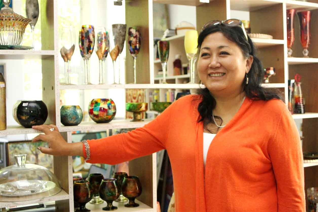 В нашей республике трудится множество талантливых мастеров, о некоторых из них мы уже рассказывали. Но особенно, среди ремесленников-художников, хотелось бы выделить удивительно обаятельную женщину, в руках которой происходит настоящее волшебство. Из обычного стекла на свет появляются настоящие шедевры. Не спорим, в настоящие дни технику витражей и росписи посуды освоили многие рукодельницы, но все-таки сфера деятельности Кайыргул Казыбековой особенная, ведь она создает восхитительные кулоны и серьги из обычных стекляшек. Мы привыкли, что стекло представлено в доме в виде функциональных вещей, но не менее органично оно и в виде арт-объекта.