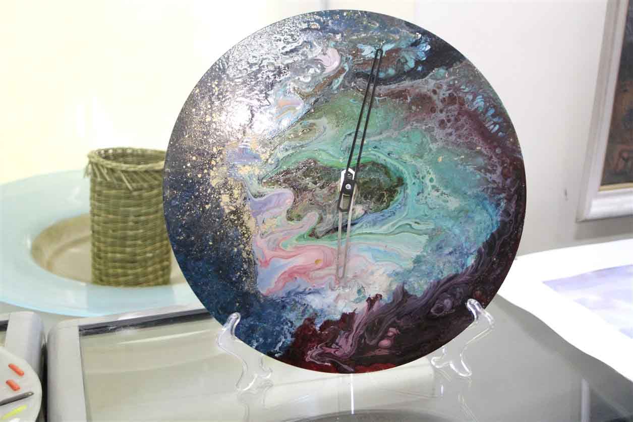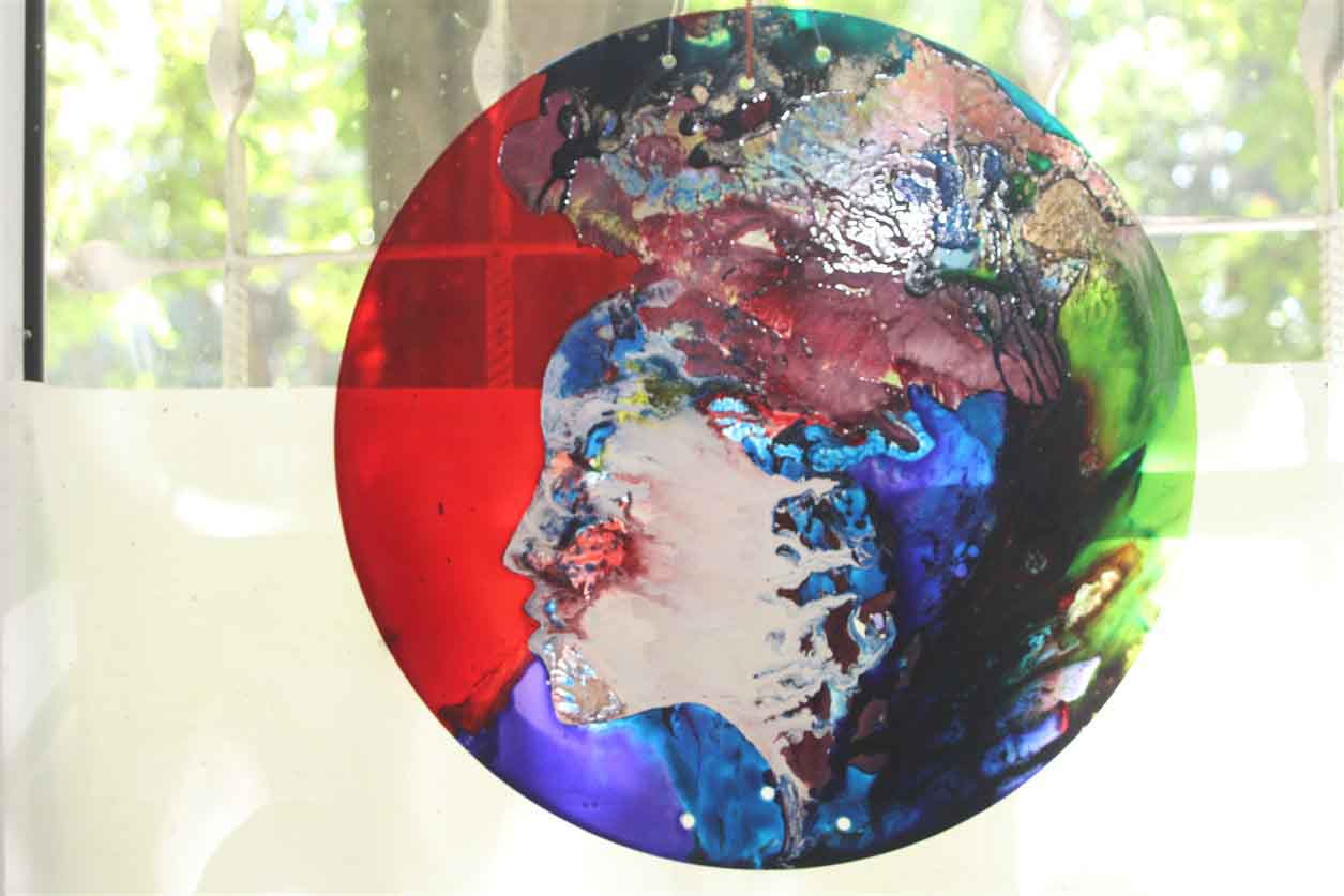 — Я сейчас работаю в направлении о соединении несоединимого, к примеру, дерева и стекла, есть акриловое, техническое и обыкновенное стекло с которым я и работаю, хочу попробовать соединить их и сейчас я в поиске материала который просто не разбивается. Знаете, ведь из стекла можно делать картины любого размера. Также занимаюсь изготовлением «Летающих картин», то есть это произведения из стекла, которые можно подвесить в доме и они, как правило, двухсторонние.