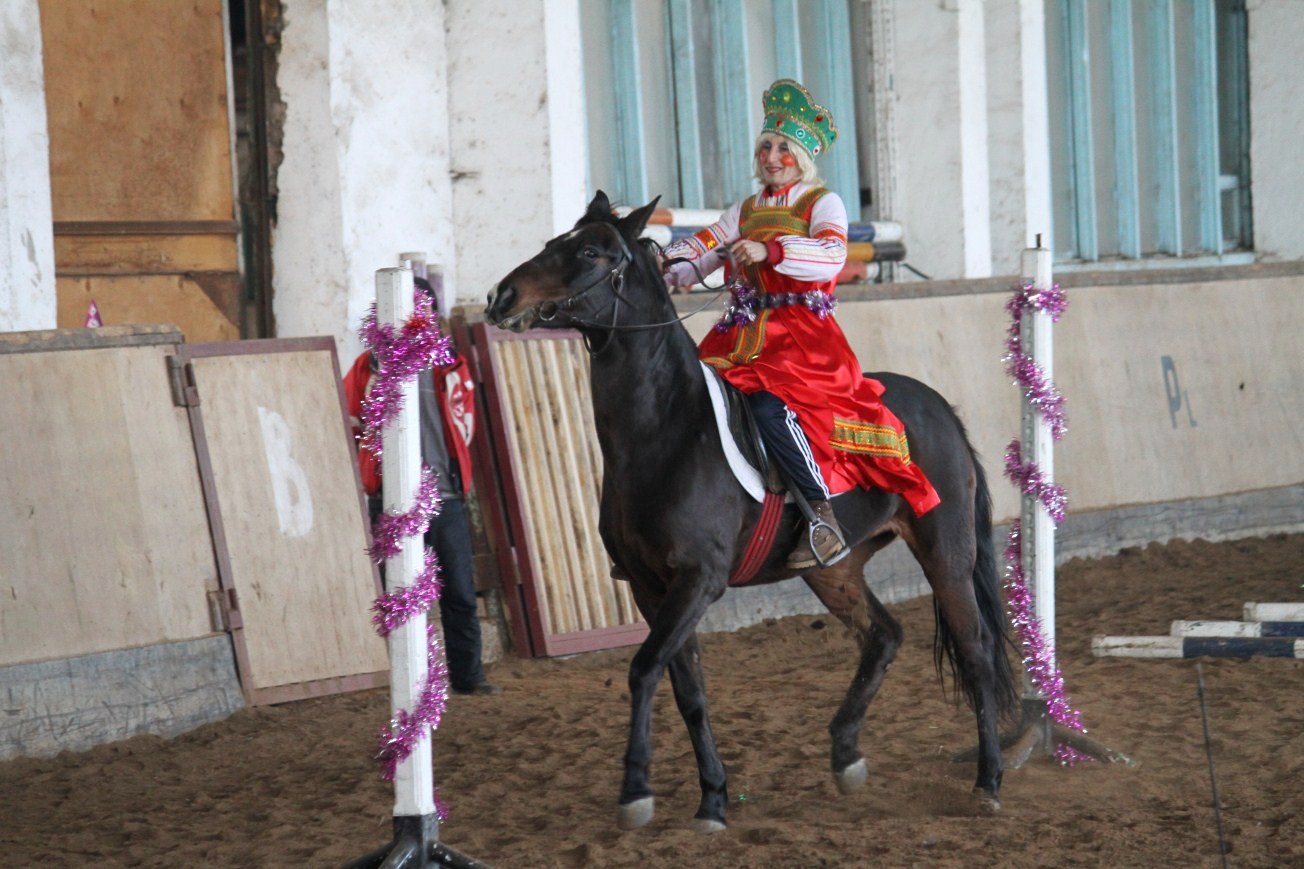 В Республиканской конно-спортивной школе состоялось традиционное новогоднее представление. Ежегодно силами учеников и тренеров ставится костюмированное шоу, главной особенностью которого является то, что все артисты выступают на конях.