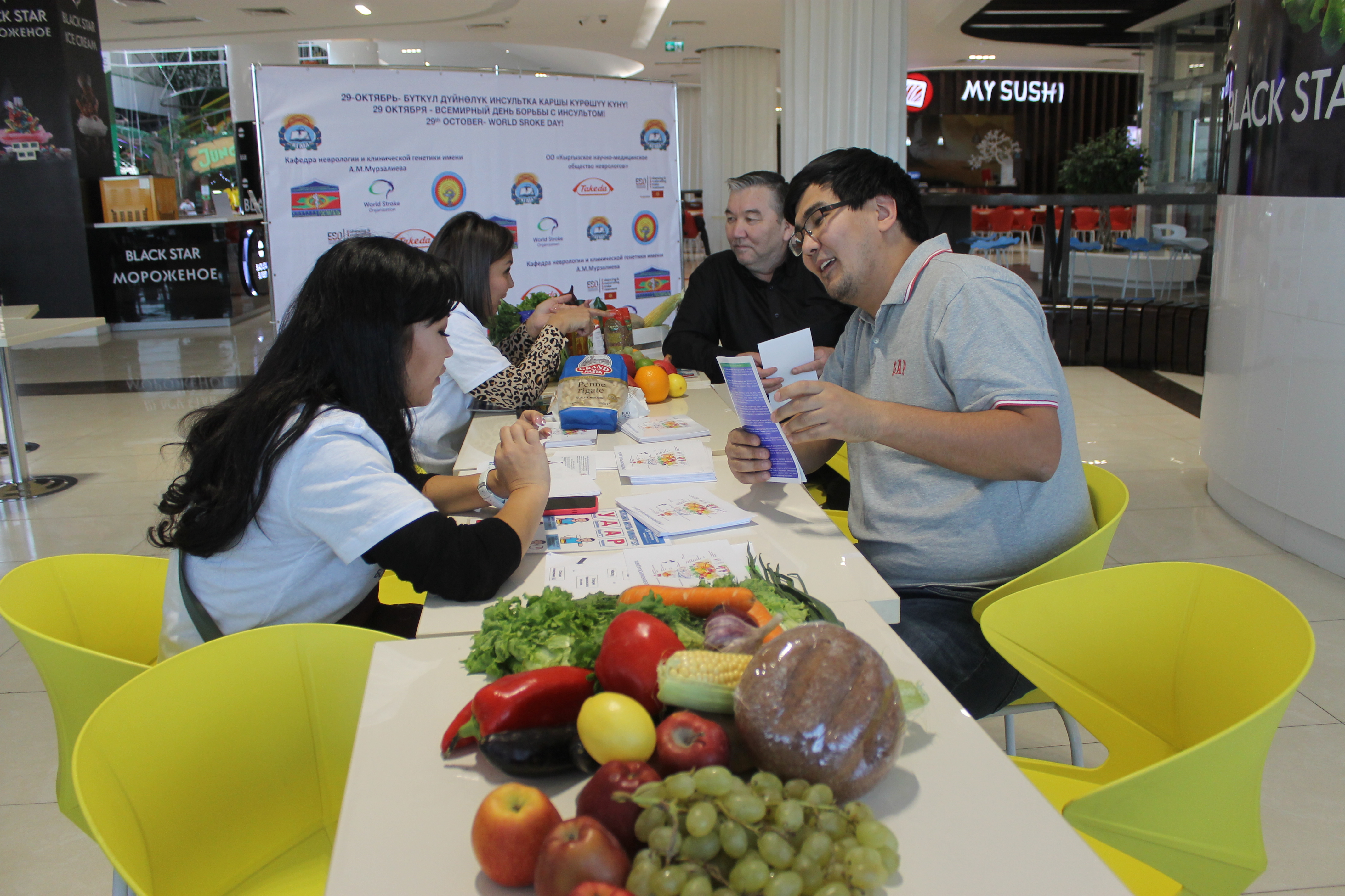 Эльмира Мамытова, заведующая кафедрой неврологии и клинической генетики им. Мурзалиева Кыргызской государственной медицинской академии, вместе со своими студентами-ординаторами в одном из столичных торговых центров организовала настоящий квест, в ходе которого можно было получить не только информацию о рисках, но и индивидуальные консультации.