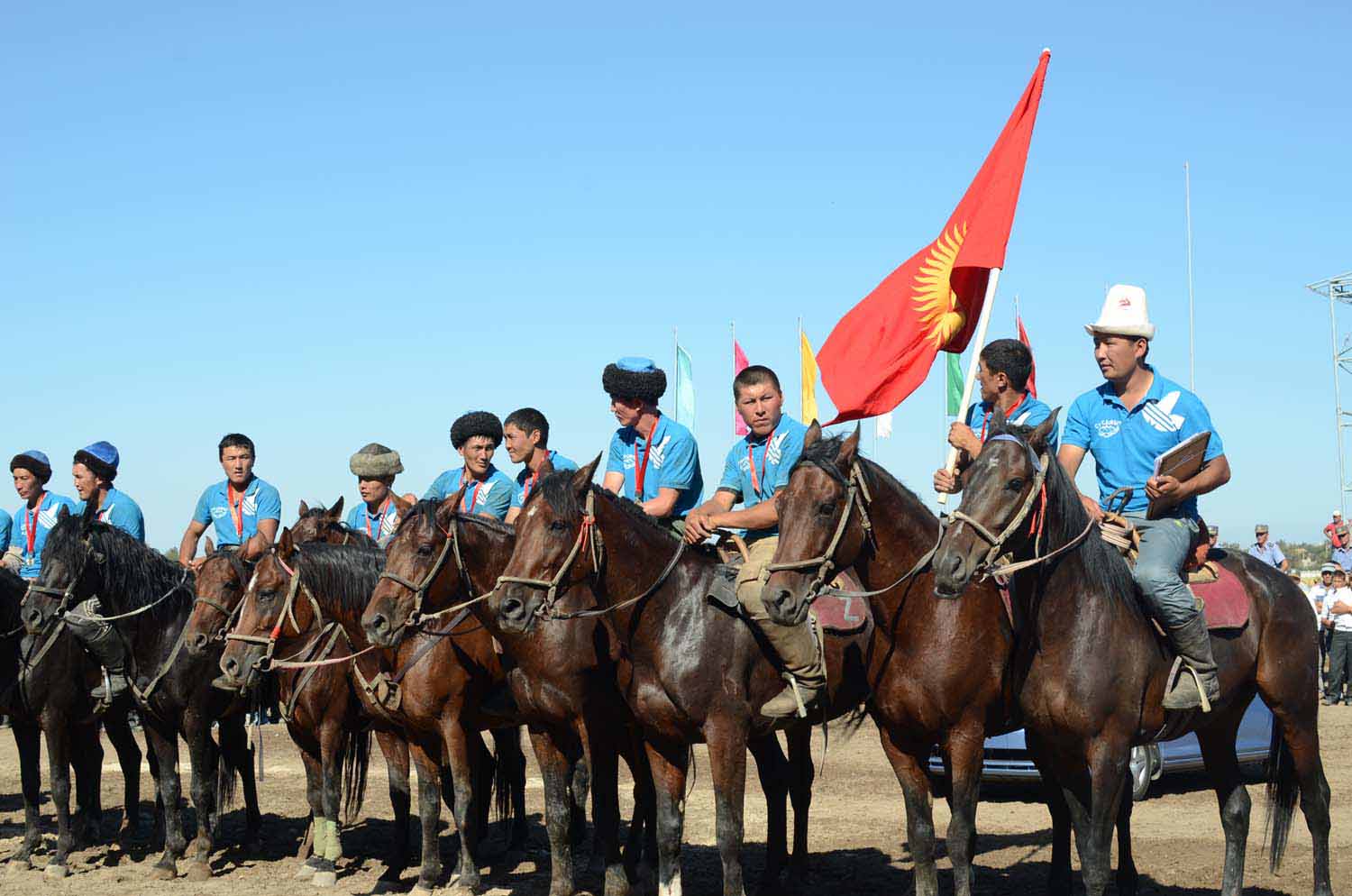 — В Кубке президента республики играет 12 команд. Раньше состязались чемпионы областей, теперь же чемпионат проводится среди клубных команд. Очень сильные команды — это «Талас-Манас», «Рассвет», «Дордой», «Борулу». Сейчас одна из самых сильных команд «Суусамыр». Кок бору развивается по всем регионам страны, состязания проводятся регулярно на ипподромах в Сокулуке, Байтике, Кемине, в каждом ауле стоят тай казаны. Мне постоянно поступают звонки с просьбой передать координаты поля. Этот спорт уже развивается сам по себе. Догоняют нас и казахстанцы, не смотря на то, что их правила отличаются от наших. В 2002 году была создана международная федерация, куда вошли и Турция, Алтай Республика Саха, Узбекистан, Китай, Таджикистан. И они приняли эту игру с нашим оригинальным названием. В свое время казахи проигрывали 10:0. Затем они стали закупать наших лошадей, снимать на видео игры и разбирать уловки и комбинации и стали побеждать. На Алтае чемпионат проводится на протяжении 10 лет, как и в Казахстане.